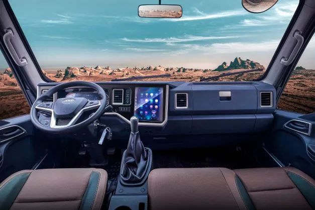 除了安全之外,駕駛室配備的環(huán)抱式雙縫線儀表臺、隱藏式按鈕,享受轎車化觸感,預(yù)留多個空白按鈕,方便用戶自定義改裝。駕駛室配備的豪華轎車設(shè)計黑棕撞色皮座椅,電動升降玻璃、多功能方向盤等配置提高了舒適性。
